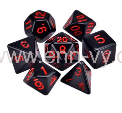 Sada 7 kostek pro RPG (D4, D6, D8, 2x D10 - jedna desítková, D12, D20). Dostupné ve více barvách. celý popis